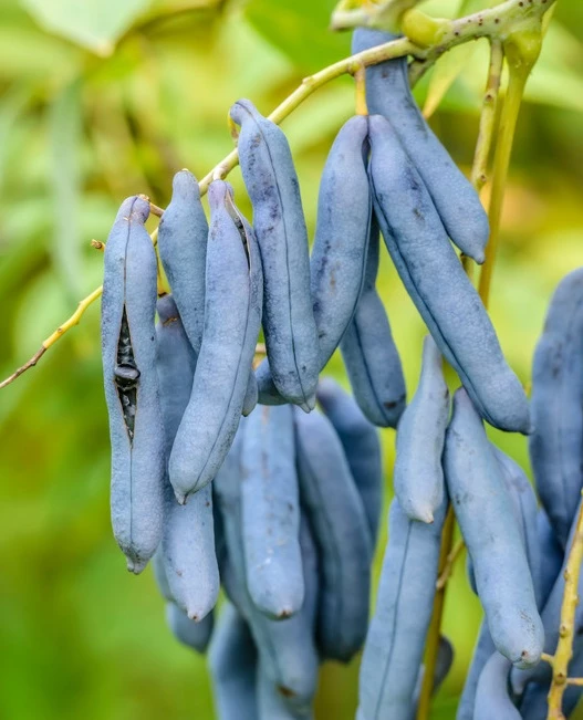 Die Blauschote besticht insbesondere durch ihre, wie der Name schon sagt, ca. 20 cm langen, bläulich schimmernden, bohnenartigen Früchten. Diese sind nicht nur an der Pflanze eine Zierde, sondern können auch zu Dekorationszwecken gut genutzt werden. Essbar sind die Früchte außerdem, sie schmecken süßlich.