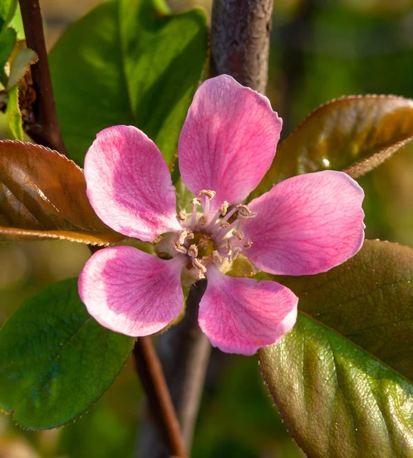 Hierzulande sehr selten zu findendes Gehölz mit guter Winterhärte und essbaren Quitten-Früchten.