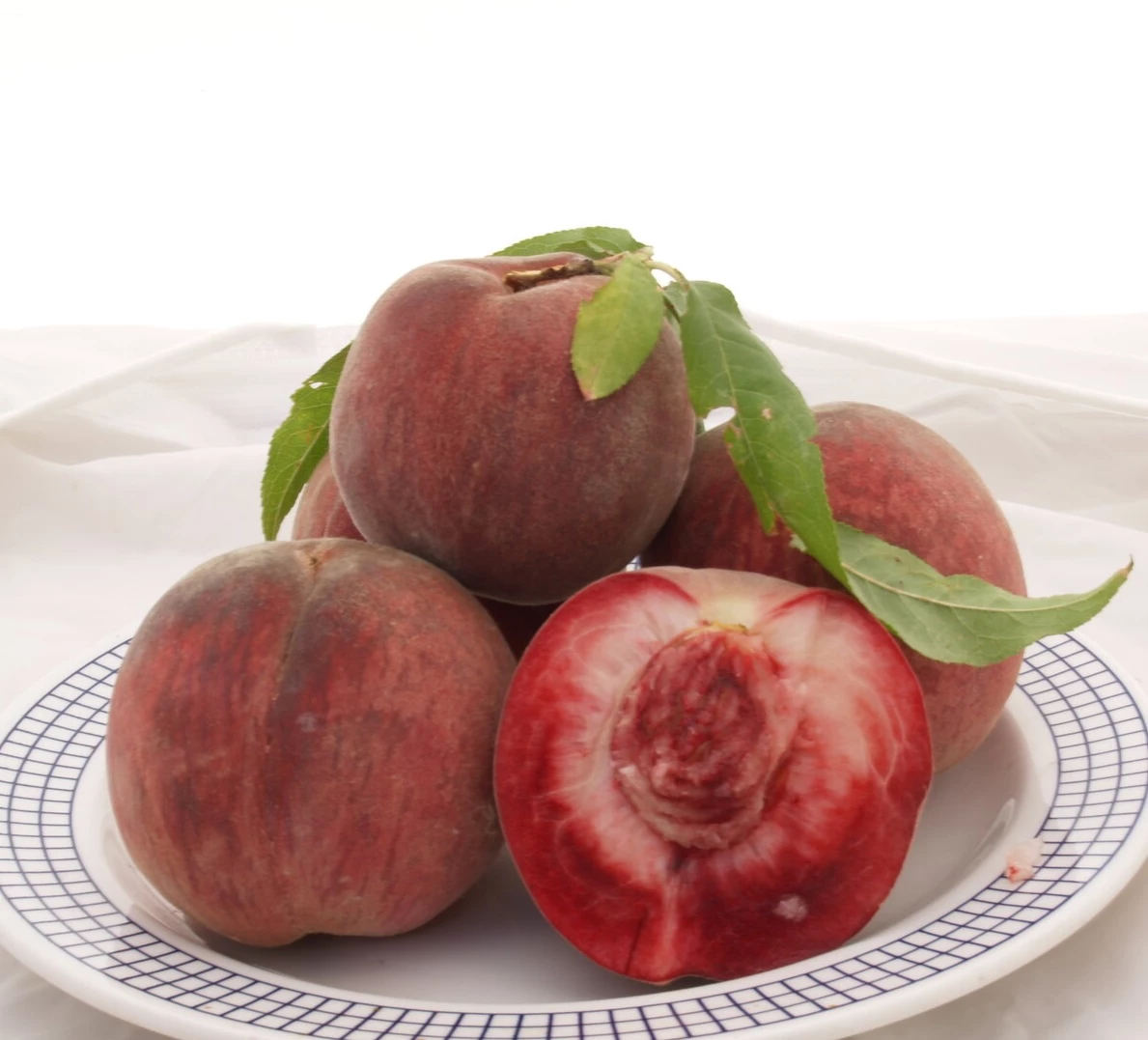 Frucht: Mittelgroße, tief rotgefärbte Frucht mit weißem Fruchtfleisch, dass ebenfalls stark dunkelrot pigmentiert ist. Festes Fruchtfleisch mit gutem Pfisichgeschmack und leichter Säure. Gut steinlösend. Fruchtschale leicht behaart. Hohe und regelmäßige Erträge.