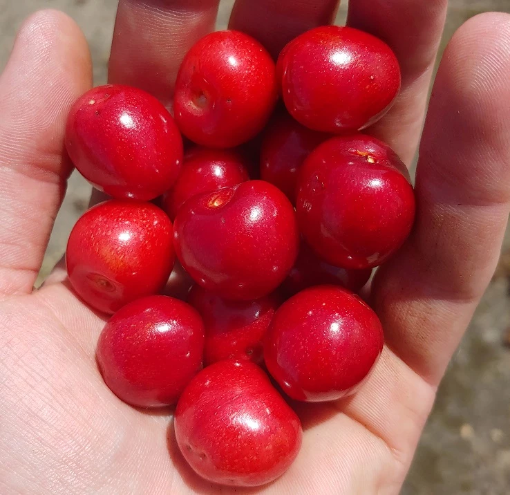 Frucht: Typische Süßkirsche mit herzförmigen, dunkelroten Früchten und aromatischem Geschmack. Recht späte Blütezeit, wodurch die Blüten weniger spätfrostgefährdet sind. Reifezeit ab Mitte Juni. Trägt meist bereits im kommenden Jahr.