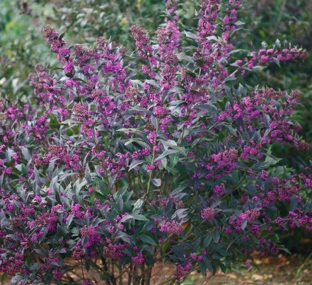 Der bekannte Liebesperlenstrauch als Neuheit mit dunkel-rot-violetter Blattfärbung und kompakt aufrechtem Wuchs. Eine Neuheit, die in unseren Gärten (noch) selten zu finden ist.