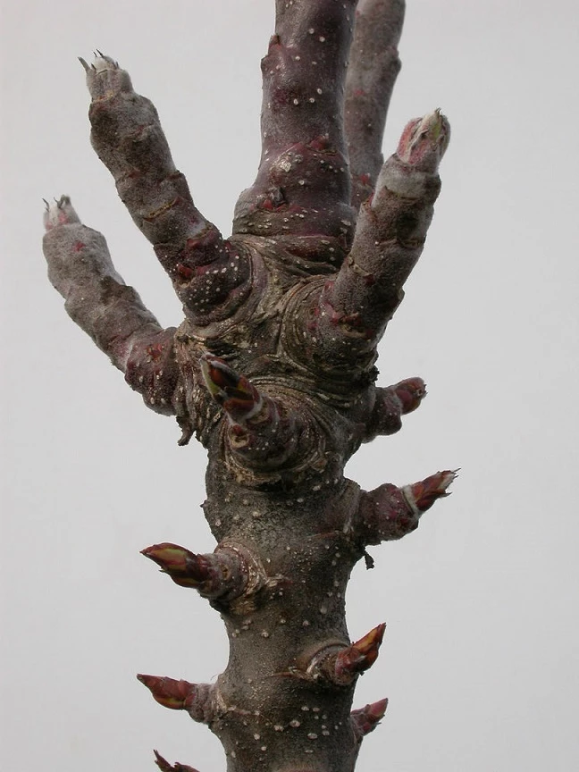 Wuchs: Sehr langsam wachsend. Kurze Triebabstände, wodurch der „kaktusartige“ Wuchs entsteht. Sehr robuste Sorte mit hoher Schorf- und Mehltautoleranz. Wuchshöhe nur ca. 2 Meter im Alter.